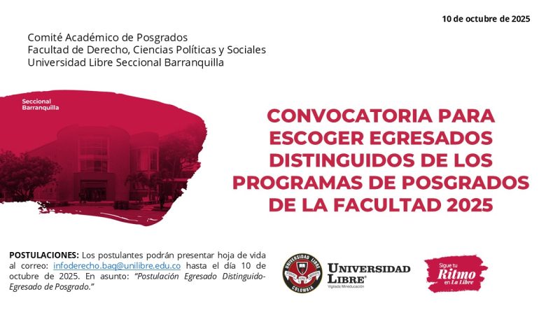 Los postulantes podrán presentar hoja de vida al correo: infoderecho.baq@unilibre.edu.co hasta el día 10 de...