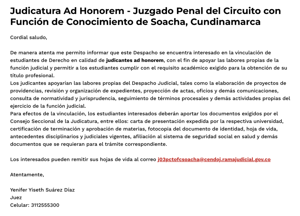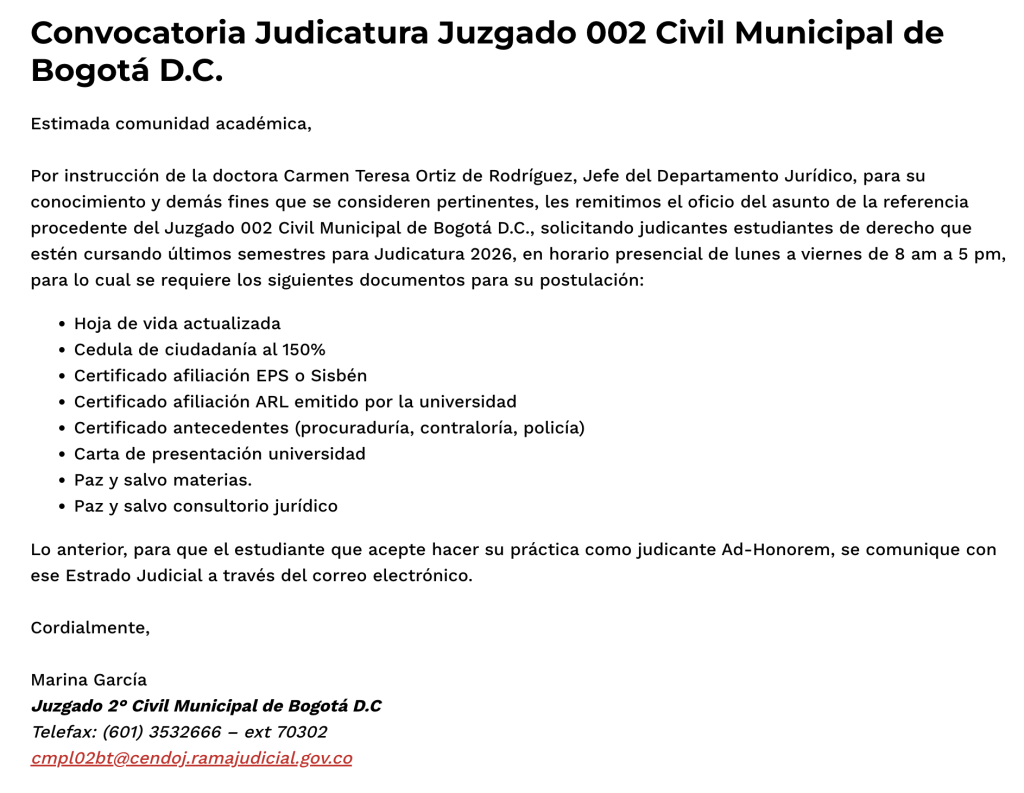Para más información escribe un correo electrónico con tu solicitud a secderecho.bog@unilibre.edu.co