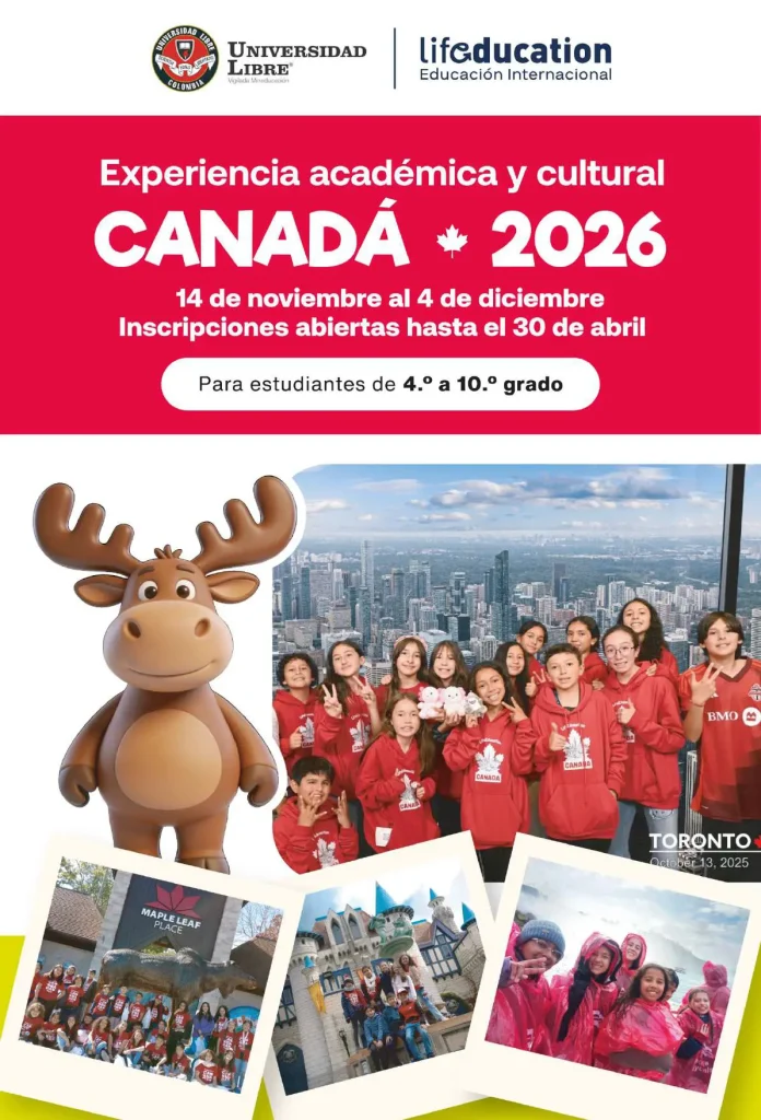 El Colegio de la Universidad Libre presenta el programa Viaje Canadá 2026, una iniciativa académica y cultural de la agencia educativa Lifeducation International, dirigida a estudiantes de grado cuarto a décimo, que se llevará a cabo en el Área Metropolitana de Toronto.