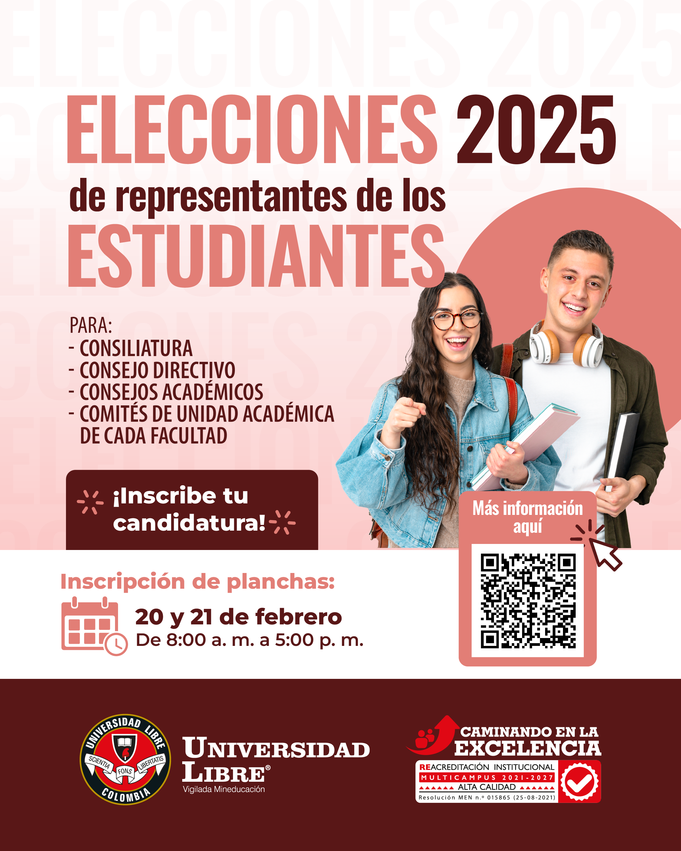 La Universidad Libre convoca a los Estudiantes de la seccional Cúcuta para que participen en la elección al Consejo Directivo, Consejo Académico y Comités de Unidad Académica, que se llevará a cabo el día 11 de marzo de 2025 entre las 8:00 y las 20:00 horas.