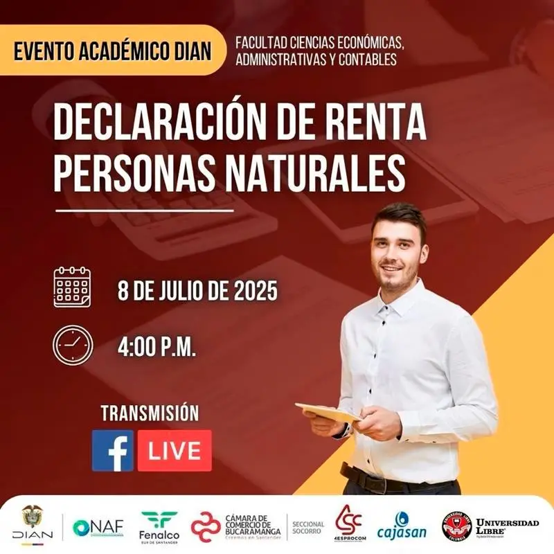 La Facultad de Ciencias Económicas, Administrativas y Contables de la Universidad Libre – Seccional Socorro, en alianza con la DIAN, te invita al evento académico sobre la Declaración de Renta para Personas Naturales.