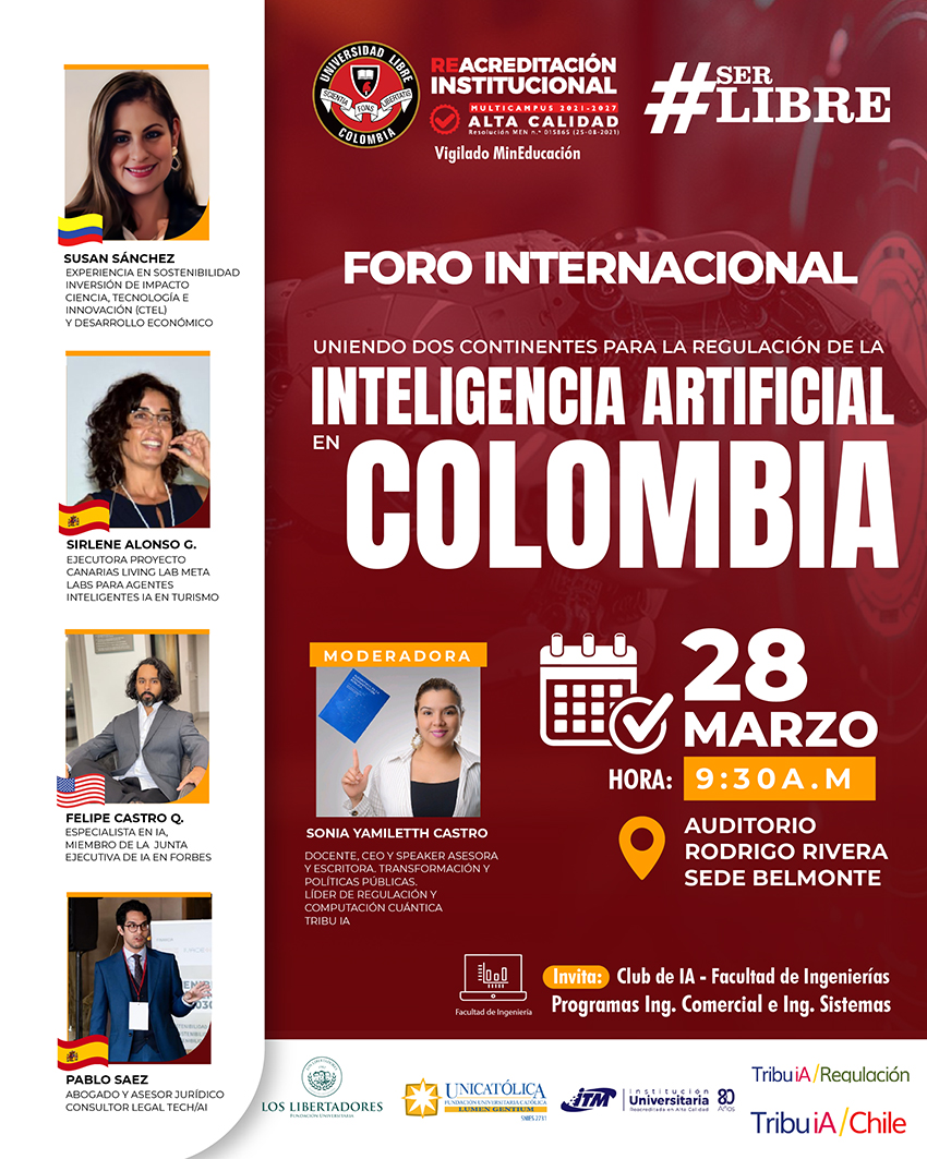 La IA está transformando el mundo, y su regulación es clave para el desarrollo sostenible y la innovación. Por eso, te invitamos a este gran foro internacional, donde expertos de distintos países compartirán su visión sobre la legislación y el impacto de la IA en Colombia.