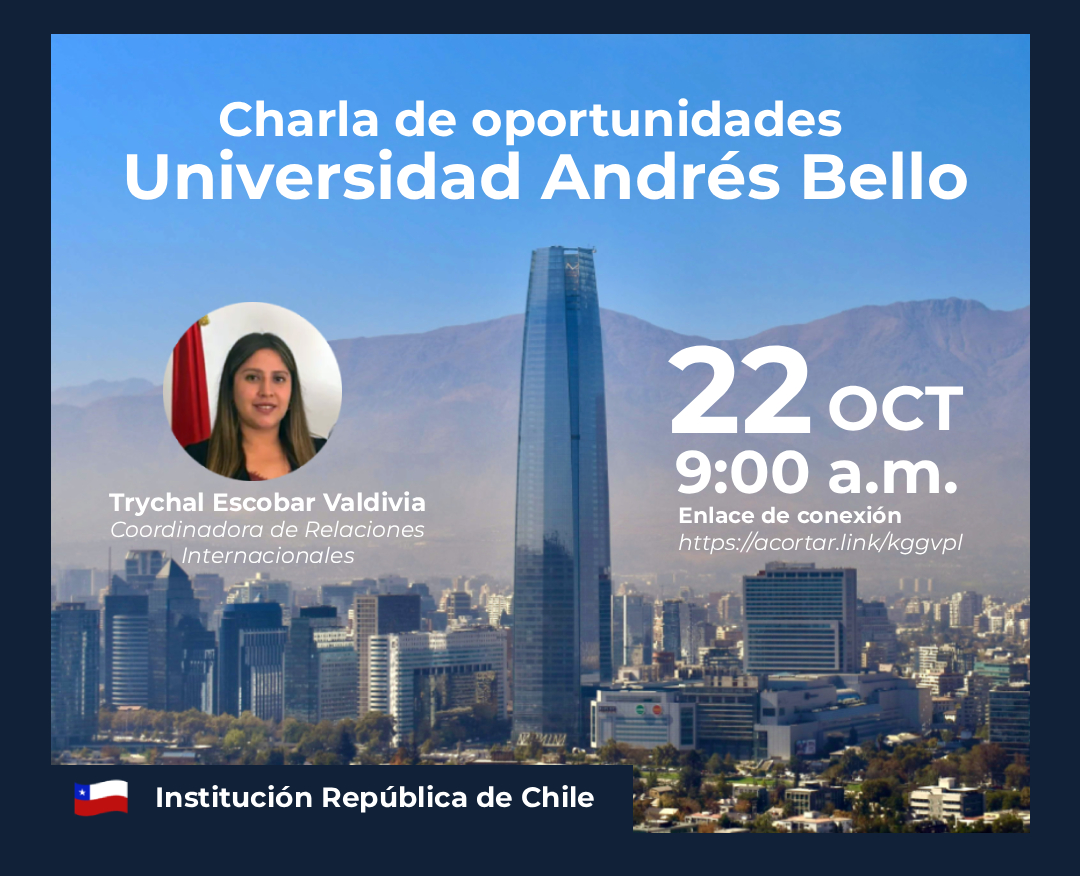 La Universidad Libre invita a toda su comunidad académica a participar el 22 de octubre de 2025 en la Charla de Oportunidades con la Universidad Andrés Bello (UNAB), una de las instituciones más reconocidas de Chile por su calidad académica y su compromiso con la internacionalización.