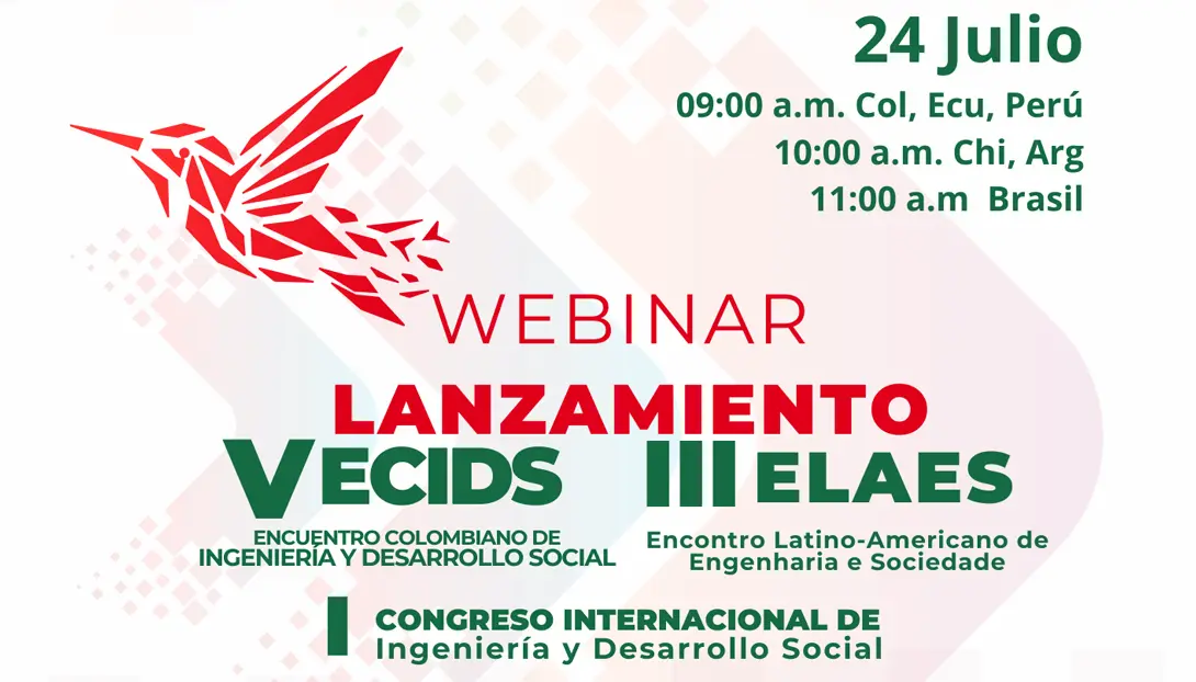La Red Colombiana de Ingeniería y Desarrollo Social – RECIDS, en alianza con la Universidad Libre Seccional Cali y la Institución Universitaria Antonio José Camacho, tiene el gusto de invitarle cordialmente a conectarse al: III Webinar de Lanzamiento, V Encuentro Colombiano de Ingeniería y Desarrollo Social, III Encuentro Latinoamericano de Ingeniería y Sociedad.