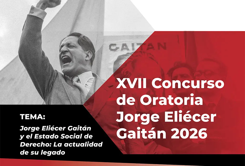La fecha límite de inscripción es el 27 de marzo de 2026, y el concurso abordará como tema central “Jorge Eliécer Gaitán y el Estado Social de Derecho: la actualidad de su legado”, promoviendo el análisis crítico de uno de los referentes más importantes de la historia política y jurídica del país, Jorge Eliécer Gaitán.