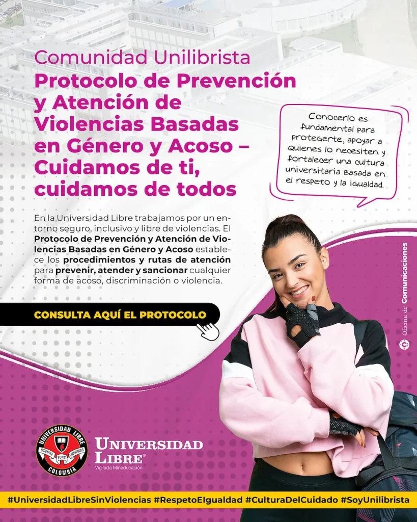 Atención ¡Comunidad Unilibrista!, conoce nuestro Protocolo de Detección, Atención y Seguimiento de Casos de Violencias de Género y Violencias Sexuales en la Universidad Libre