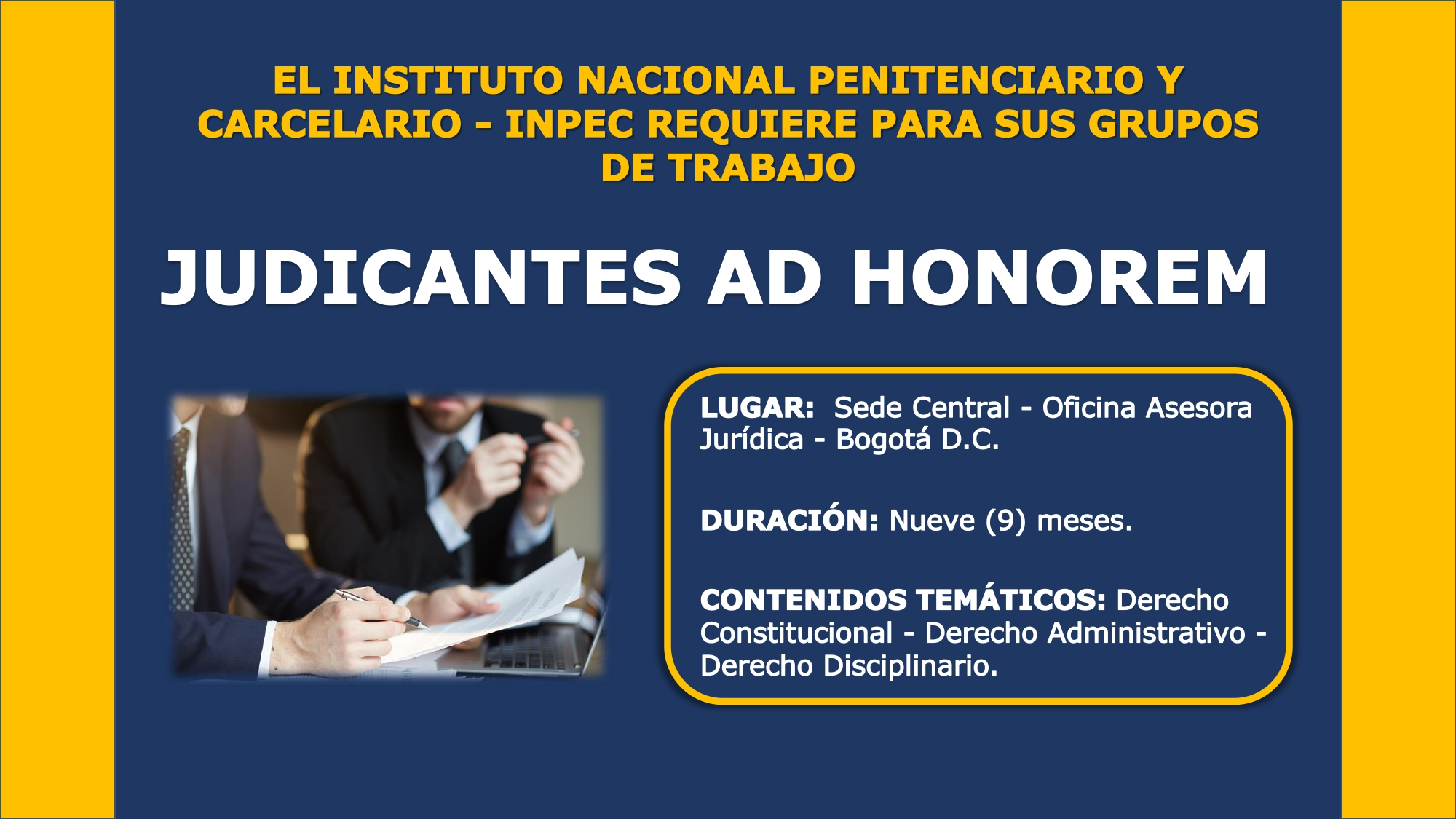 La Oficina Asesora Jurídica del Instituto Nacional Penitenciario y Carcelario (INPEC) abrió una convocatoria para que los estudiantes de Derecho que hayan cumplido con la totalidad de los créditos de su programa académico puedan realizar su judicatura Ad Honorem en la sede central de la entidad.