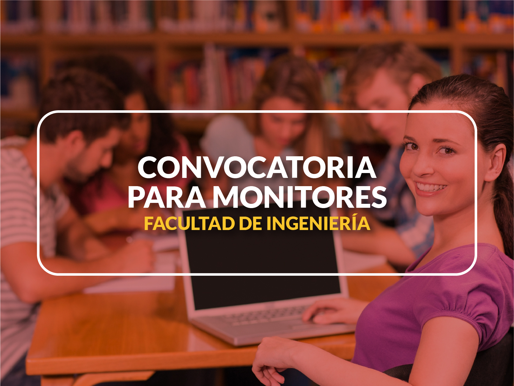 Según lo dispuesto en el acuerdo N.º 03 de octubre 9 de 2007, la Facultad de Ingenierías convoca a estudiantes de 5.° 6.° 7.° y 8.° semestre o egresados no graduados del programa de Ingeniería Industrial, Ingeniería Civil e Ingeniería en Tecnología de la Información y Comunicaciones a participar en el concurso para monitores.