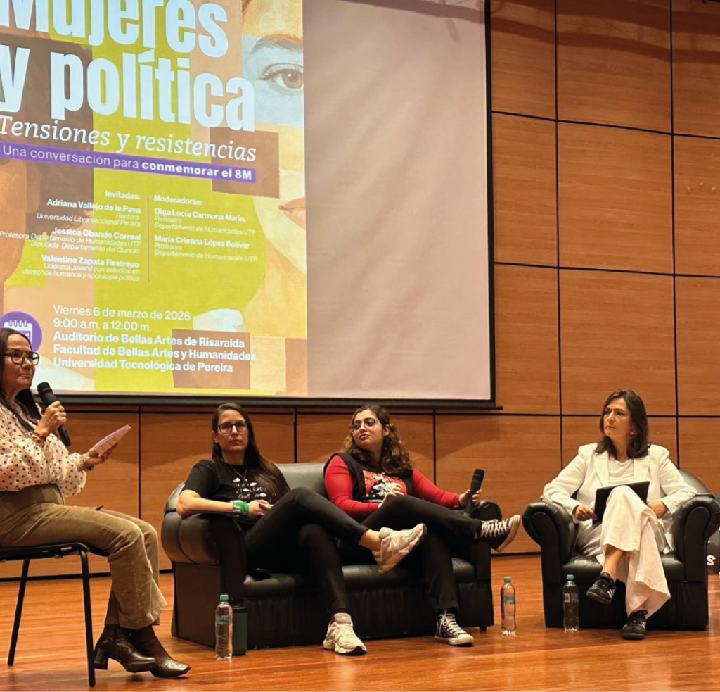 En el marco de la conmemoración del Día Internacional de la Mujer, la rectora de la Universidad Libre seccional Pereira, Adriana Vallejo de la Pava, participó como panelista en el foro “Mujeres y política: tensiones y resistencias”, realizado en la Universidad Tecnológica de Pereira y organizado por la Facultad de Bellas Artes y Humanidades junto con el Departamento de Humanidades de esta institución.