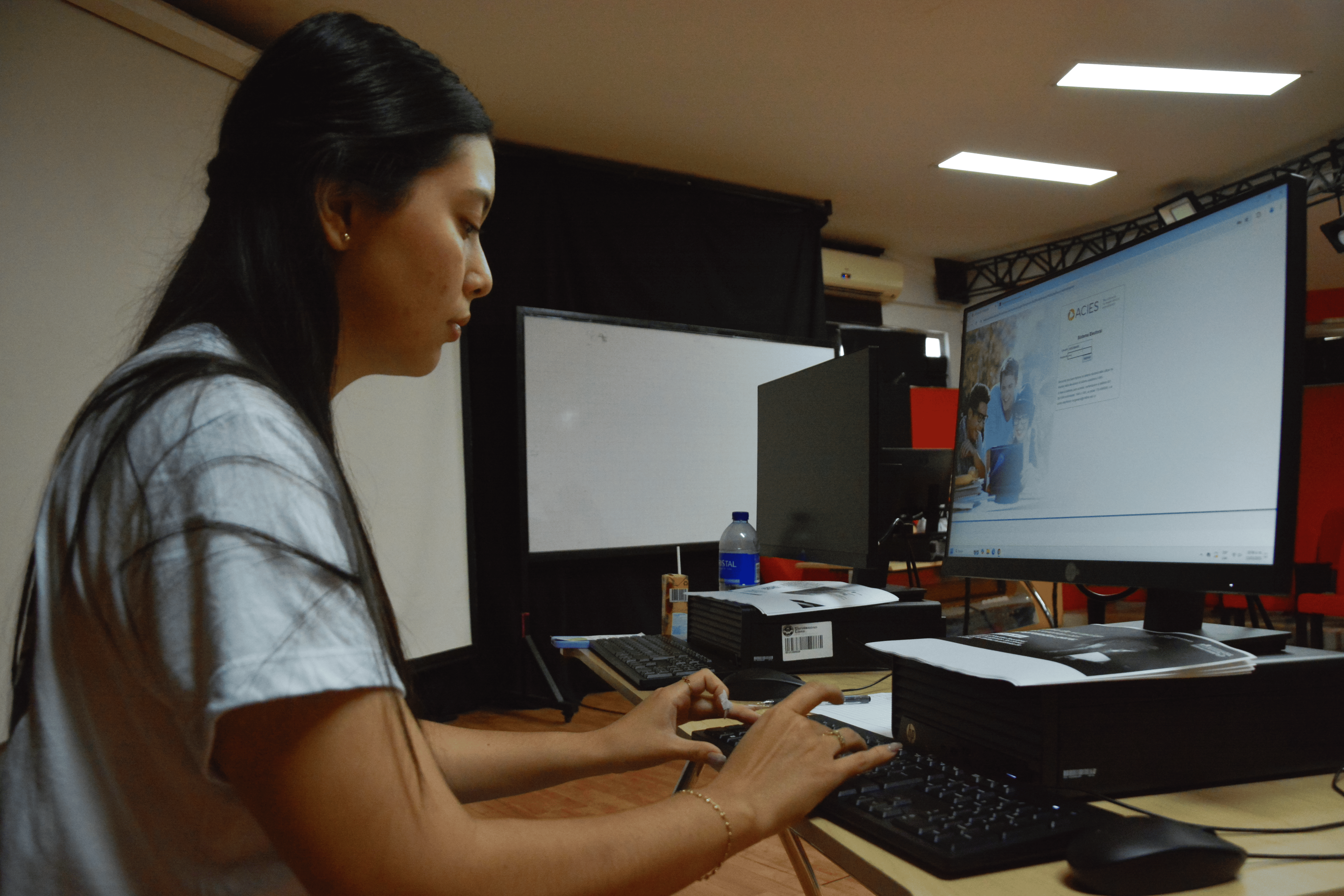 Desde las 8:00 a. m., los votantes cuentan con dos modalidades para ejercer su derecho: de manera presencial en el teatro institucional, donde se han dispuesto equipos tecnológicos y jurados de votación, o de forma virtual, accediendo a la plataforma electoral mediante códigos QR ubicados en distintos puntos del campus.