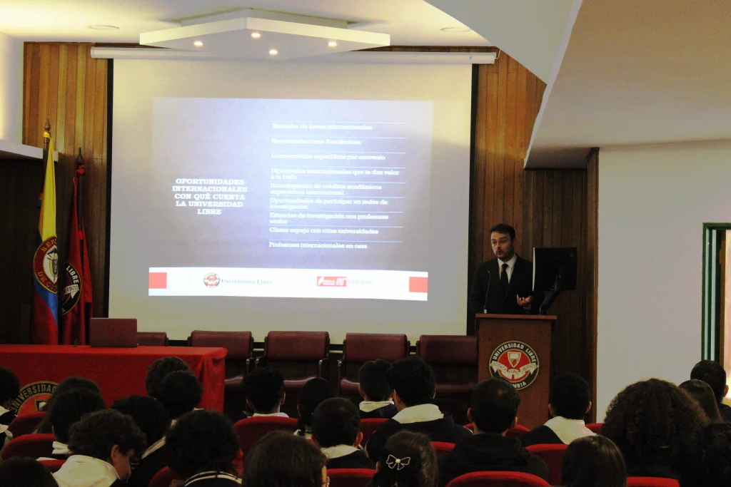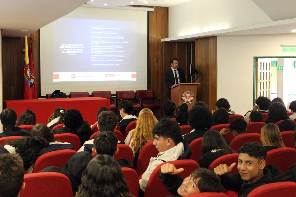 En el auditorio del bloque C de la Facultad de Ciencias Económicas, Administrativas y Contables de la Universidad Libre, se llevó a cabo una charla informativa dirigida a los estudiantes de grados décimo y once del Colegio de la Universidad Libre.