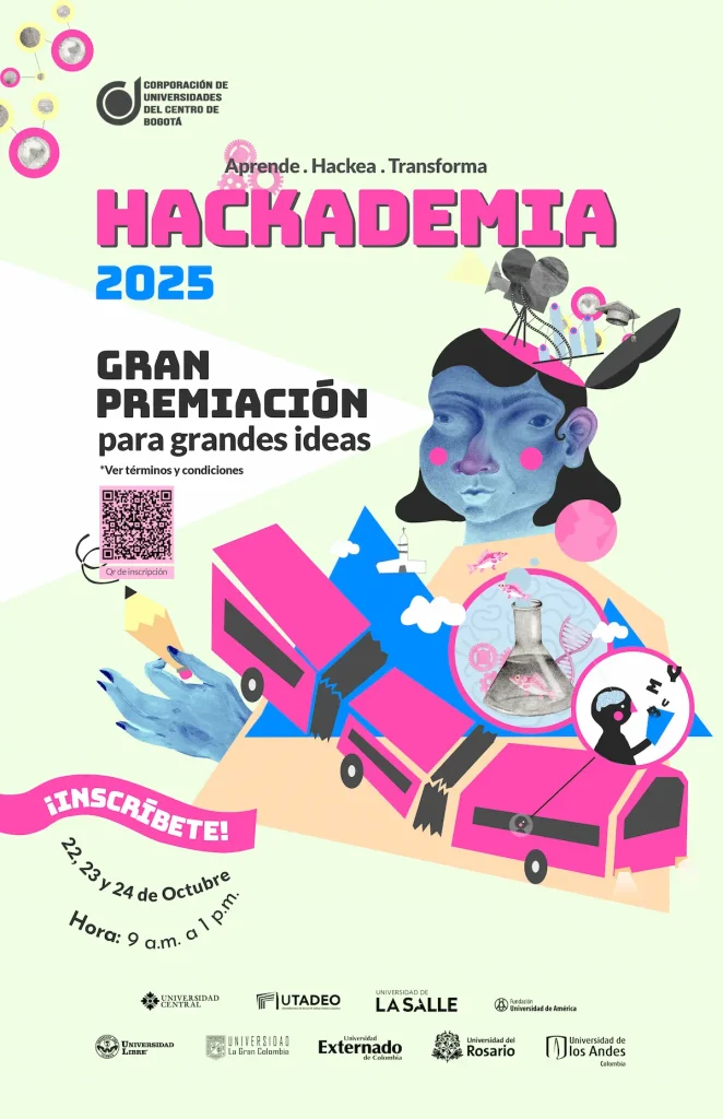 La Hackademia 2025, el gran evento de activación académica, se realizará del 22 al 24 de octubre de 2025 en la Universidad Jorge Tadeo Lozano, en Bogotá. Se trata de un espacio colaborativo que busca fomentar la reflexión y la innovación sobre el papel de la educación universitaria como motor del desarrollo social y profesional.