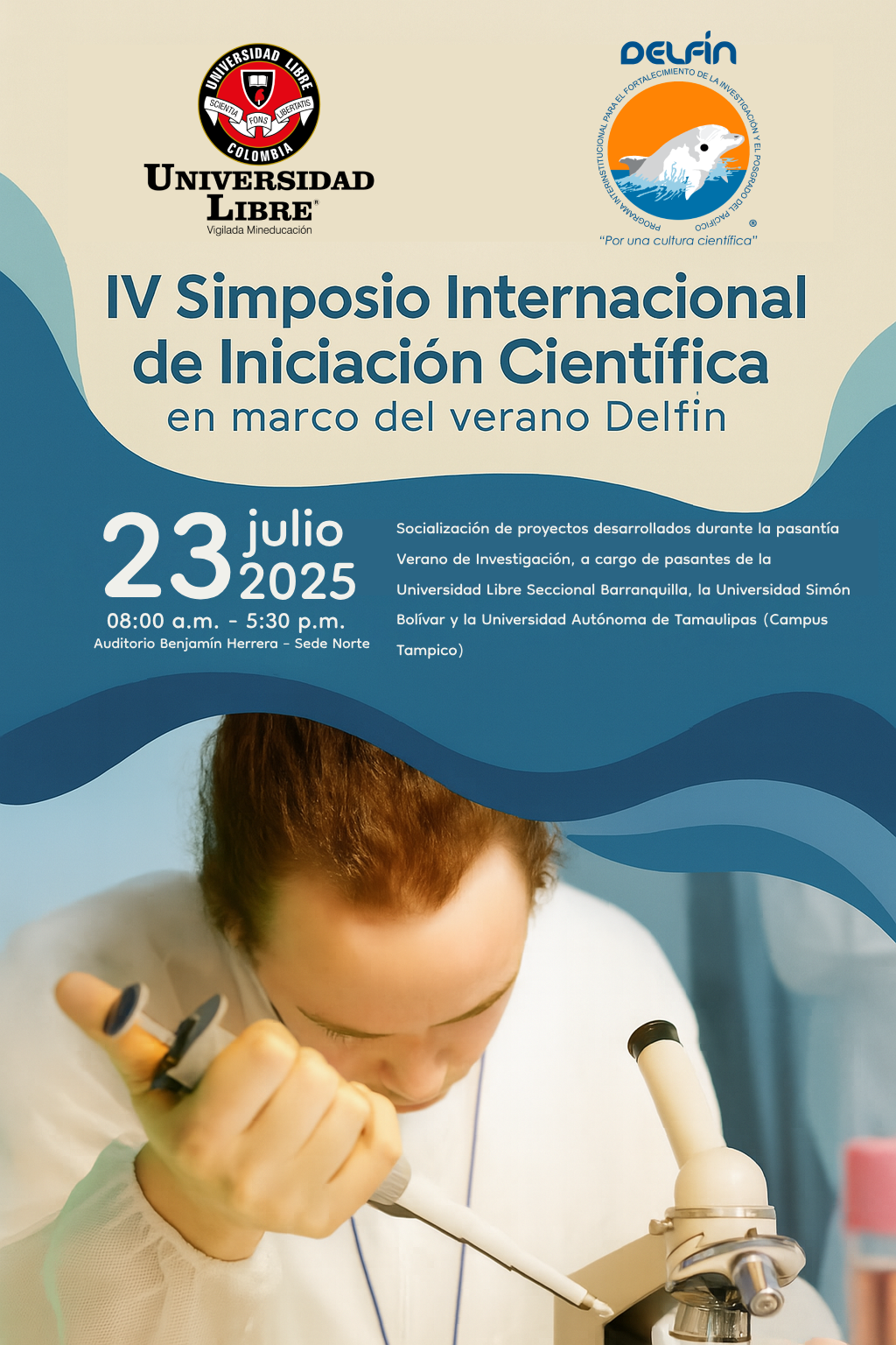 La Facultad de Ciencias de la Salud de la Universidad Libre extiende una cordial invitación a toda la comunidad académica para participar en el IV Simposio Internacional de Iniciación Científica, que se desarrollará en el marco del programa Verano de Investigación Delfín 2025.