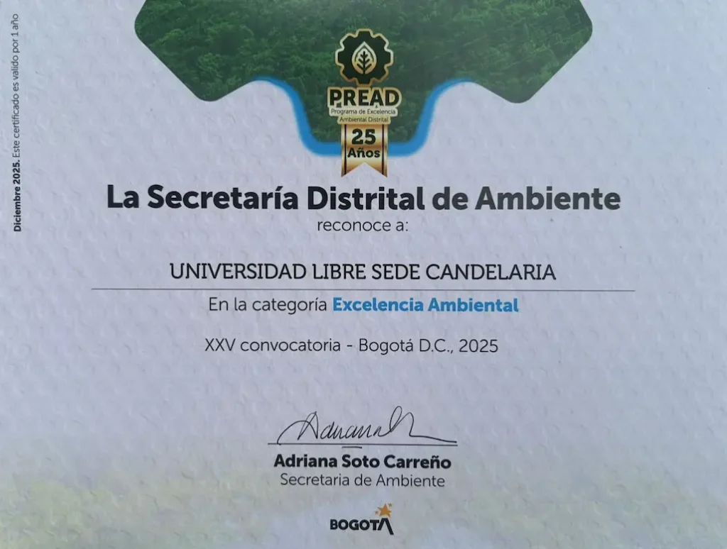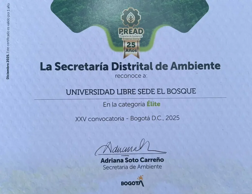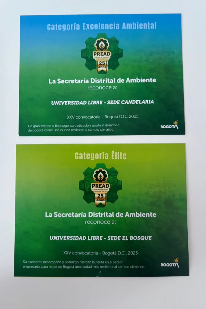 La Universidad Libre ha sido distinguida por el Programa de Excelencia Ambiental Distrital – PREAD, recibiendo importantes reconocimientos que ratifican su liderazgo en sostenibilidad y gestión ambiental responsable.