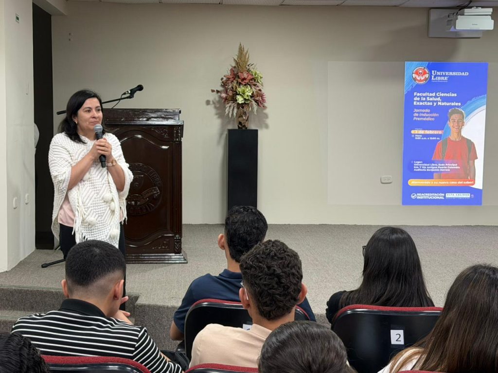 Durante la jornada también intervino la Dra. Astrid Arrieta, Directora del Programa de Medicina, quien resaltó que el Curso Premédico es un proceso exigente que demanda constancia, dedicación y ética, pues representa el primer paso para quienes aspiran a convertirse en médicos formados con el sello humanista y científico de la Universidad Libre.