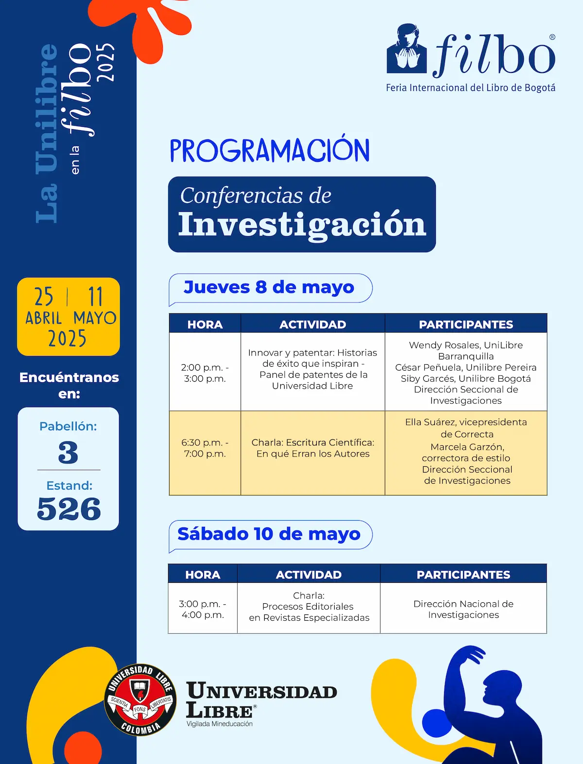 Del 25 de abril al 11 de mayo, la Universidad Libre hará parte de la Feria Internacional del Libro de Bogotá con un estand en el que tendremos grandes actividades para todos nuestrosvisitantes.