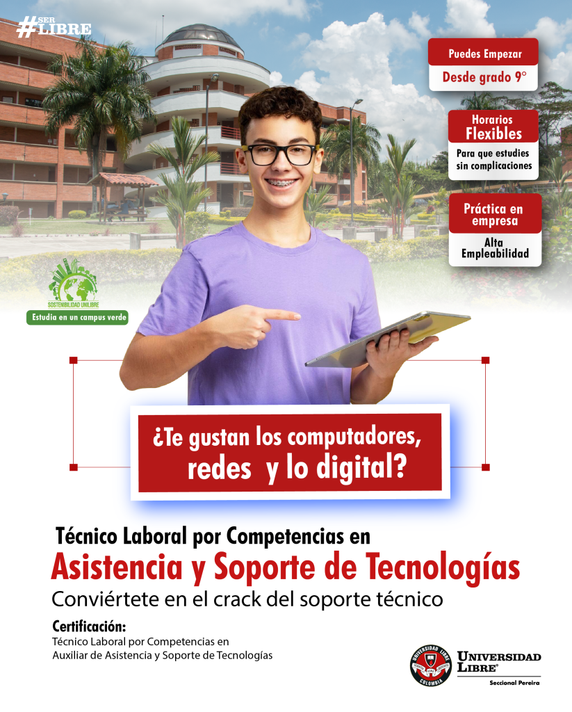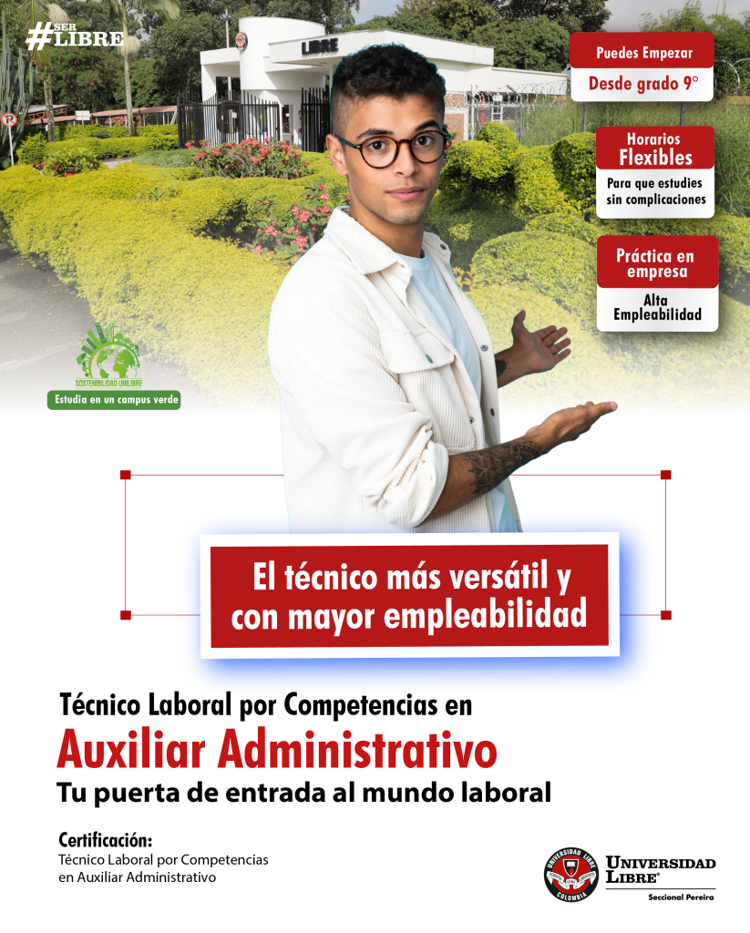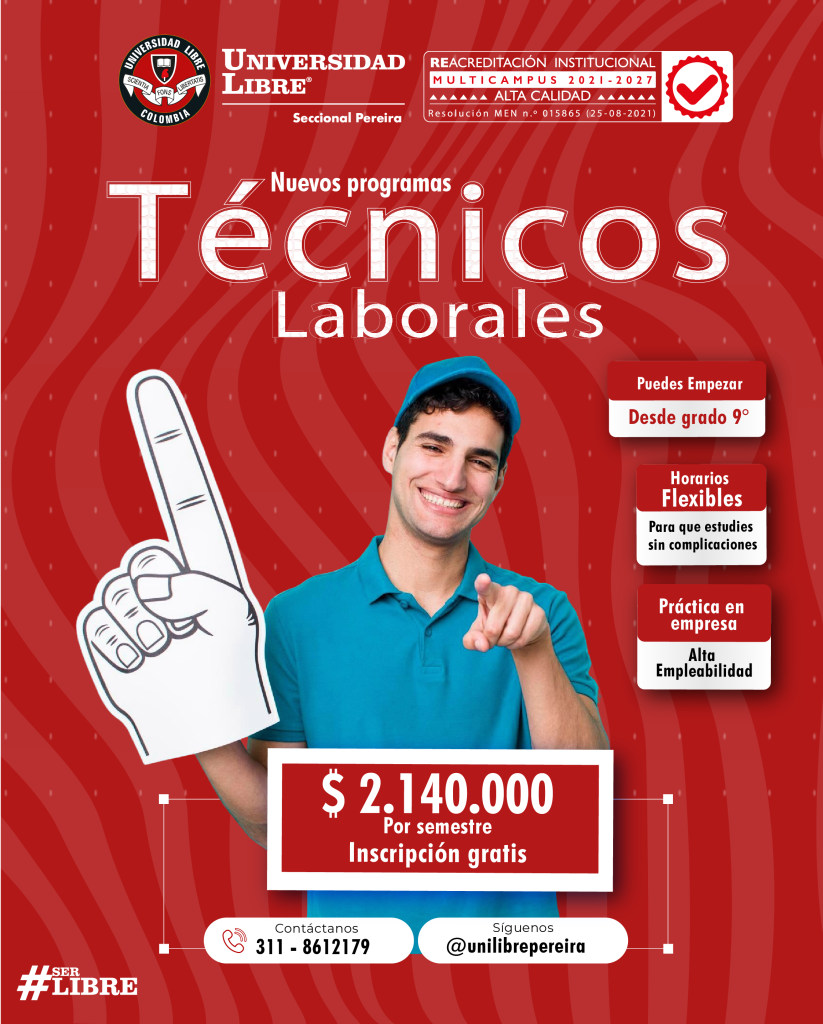 Con esta nueva oferta de programas técnicos laborales, la Universidad Libre Seccional Pereira brinda una oportunidad real de formación, crecimiento y acceso al empleo, respondiendo a las necesidades del sector productivo y reafirmando su vocación social de ofrecer educación de calidad, incluyente y pertinente para la región.