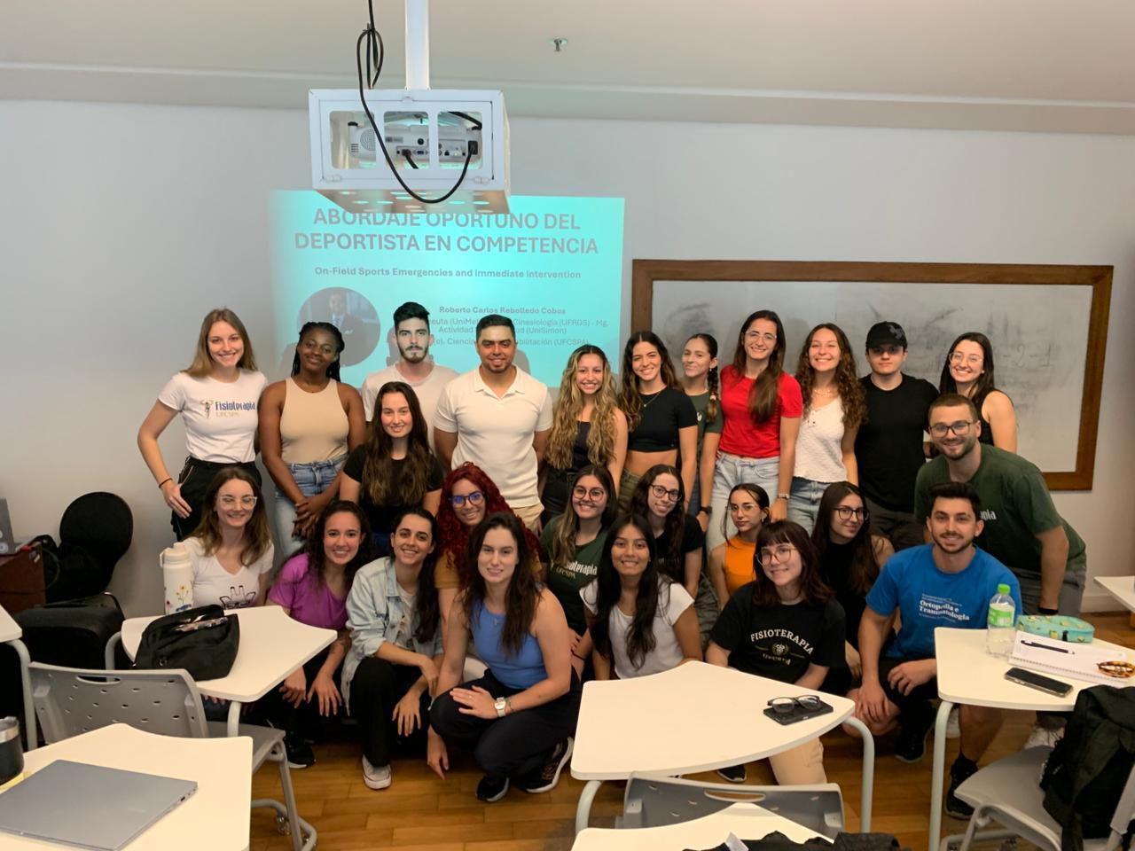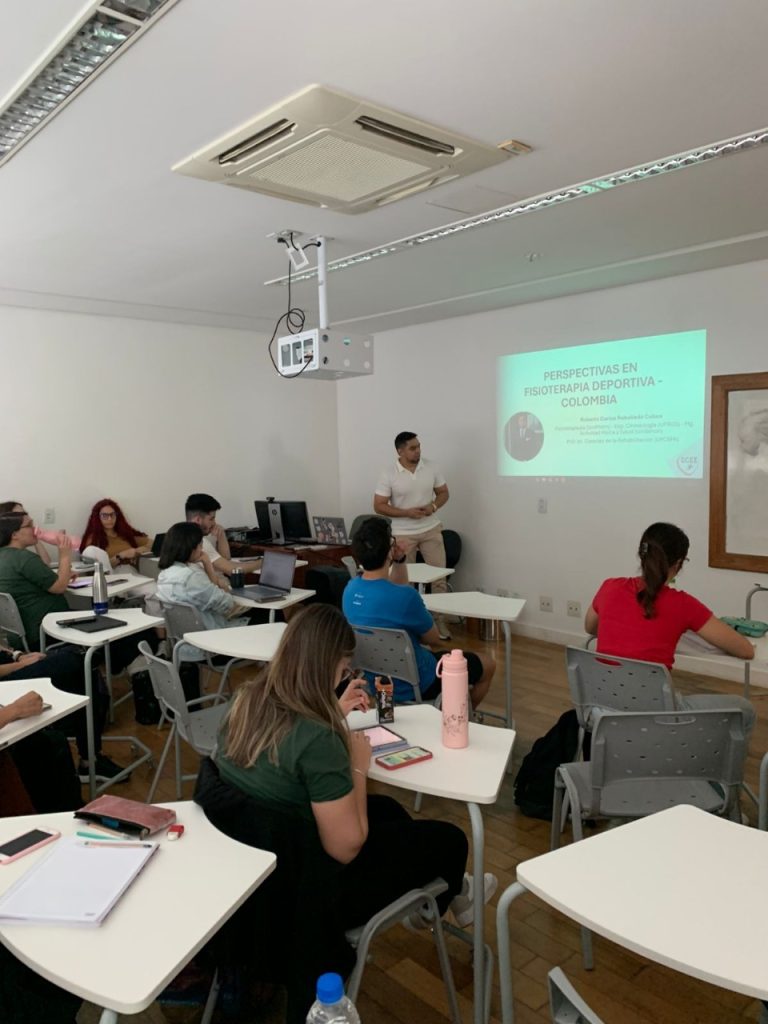 Durante su estancia en Brasil, el profesor Rebolledo ha impartido sesiones académicas dirigidas a estudiantes del Programa de Ciencias de la Rehabilitación, en las cuales ha abordado temas fundamentales como la fisioterapia deportiva, la atención de emergencias en campo y las estrategias de intervención inmediata en deportistas lesionados. Estas temáticas, derivadas de su amplia trayectoria profesional e investigativa en Colombia, han generado un alto interés entre los estudiantes brasileños, quienes reconocen el valor de conocer perspectivas, experiencias y metodologías utilizadas en otros contextos latinoamericanos.