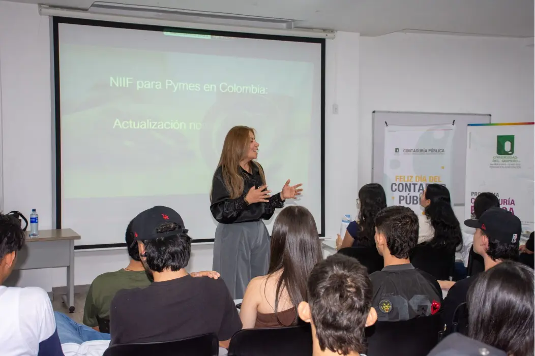 El pasado 3 de marzo de 2026, el programa de Contaduría Pública de la Unilibre Bogotá hizo presencia la ciudad de Armenia, en la conmemoración del Día del Contador Colombiano, organizada por la Universidad del Quindío. Durante la jornada, la directora de nuestro programa de Contaduría, Claribel Vargas Hernández, desarrolló una destacada conferencia.