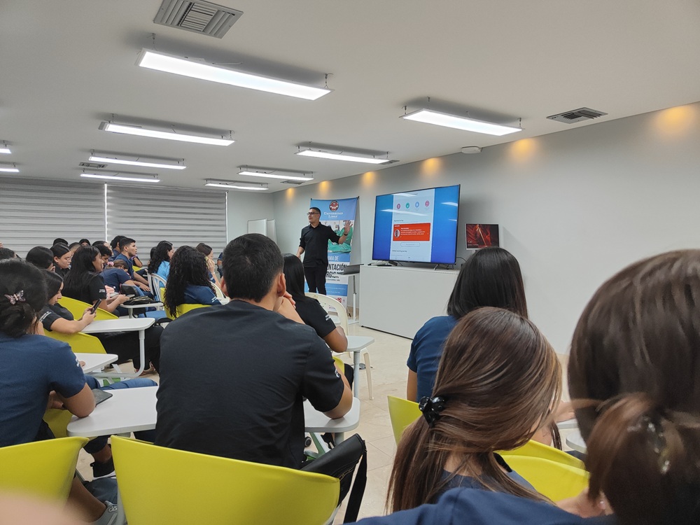 Uno de los momentos más destacados de la conferencia fue la presentación de herramientas de Inteligencia Artificial específicas para el ámbito de la salud. El conferencista mostró diversas plataformas y aplicaciones que están revolucionando la manera en que se toman decisiones médicas, optimizando procesos clínicos y mejorando el diagnóstico y tratamiento de los pacientes. Los estudiantes pudieron conocer cómo estas herramientas pueden integrarse en su práctica profesional para optimizar resultados y aumentar la seguridad en los procedimientos médicos.