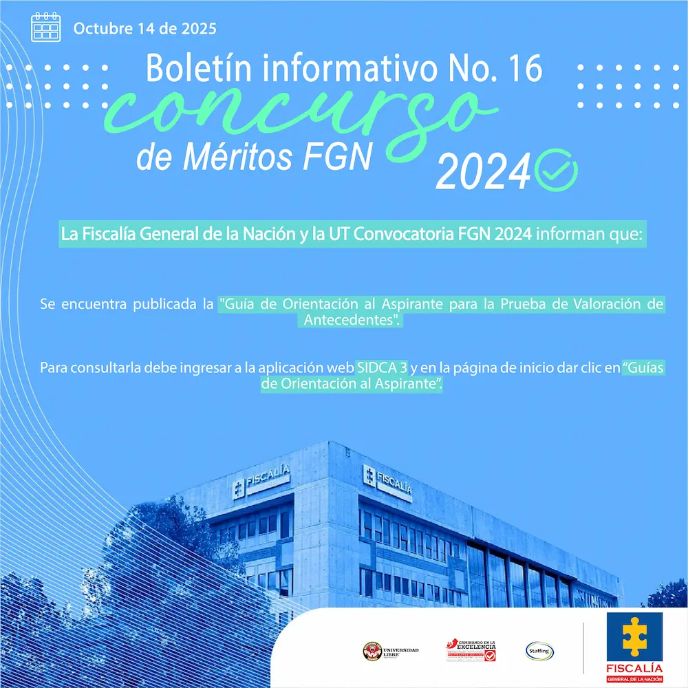 Por lo anterior, se publica el citado fallo de tutela, con el fin de notificarlo a los participantes del proceso de concurso de méritos para proveer los cargos de la Fiscalía General de la Nación, derivado de la CONVOCATORIA FGN 2024 SIDCA 3.