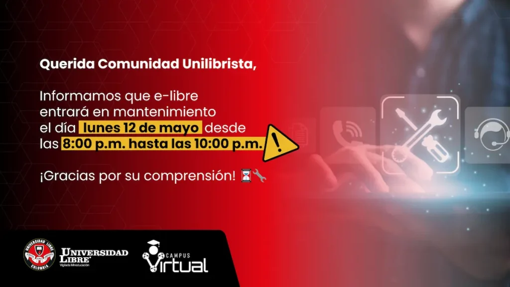 Informamos a la comunidad Unilibrista que la plataforma e-Libre entrará en mantenimiento el 12 de mayo, desde las 8:00 p.m. hasta las 10:00 p.m.…