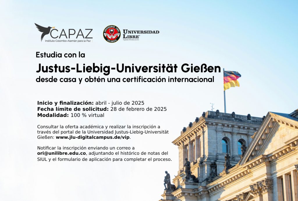 La Universidad Libre invita a su comunidad académica a participar en el Programa Internacional Virtual (VIP) de la Universidad Justus-Liebig-Universität…