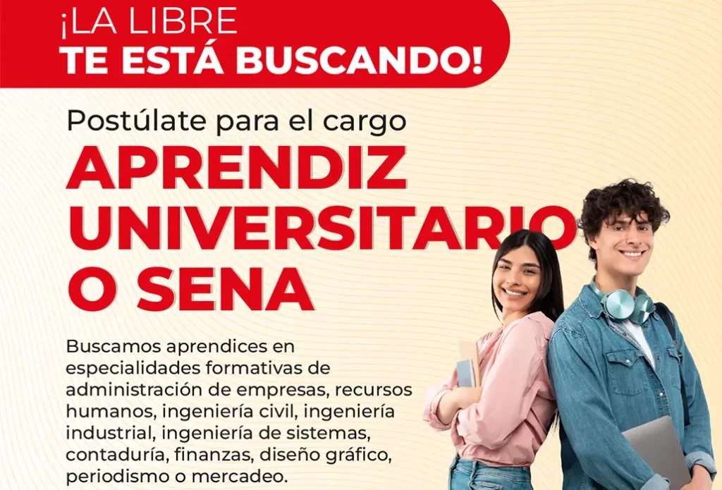 La Universidad Libre te invita a postularte al cargo de aprendiz universitario o del SENA, en especialidades formativas de administración…